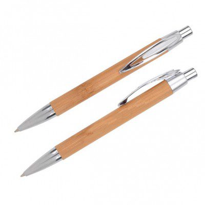 Sylish executive-style push Button Ballpoint Pens made from sustainable bamboo; silver fittings/trim..Indicative Price for 500 printed 1 colour - $ 1.46 ea
